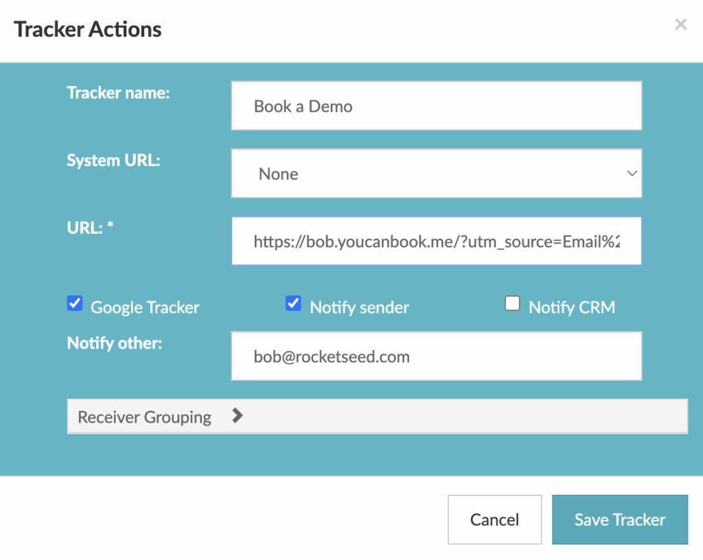 Enter the URL in the relevant text boxes and add an associated tracker name. Click the tracked check box if you would like to change the link to a tracker.