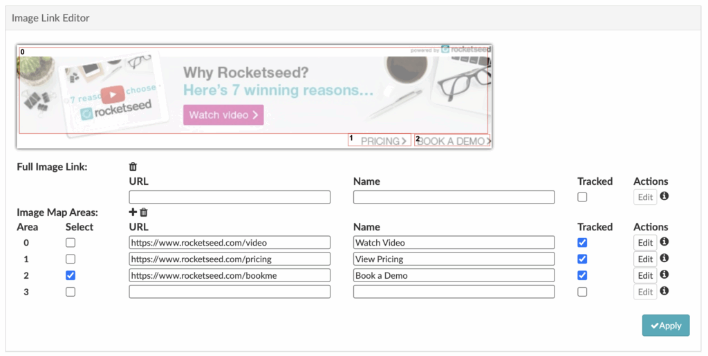 Some banners contain only one piece of specific information and therefore needs only one area of engagement. The Rocketseed Application allows you to add one applicable link to the entire banner ensuring that any click on that banner takes the email recipient to the relevant information on the website.