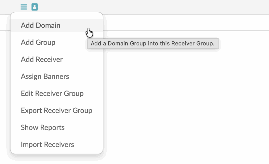 Using the people toolbar on the left, navigate to the Receiver’s section. Using the hamburger menu to the right of the Receiver section select the “Add Group” option from the menu.