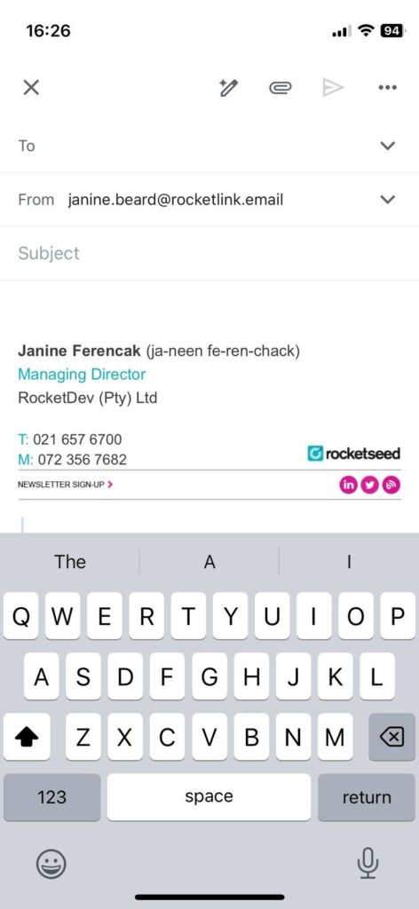 PLEASE NOTE: This feature is currently only supported by the Gmail App on iPhone mobile devices. For emails sent from your Android mobile device, the email signature will be added once the mail is routed via the Rocketseed server.
